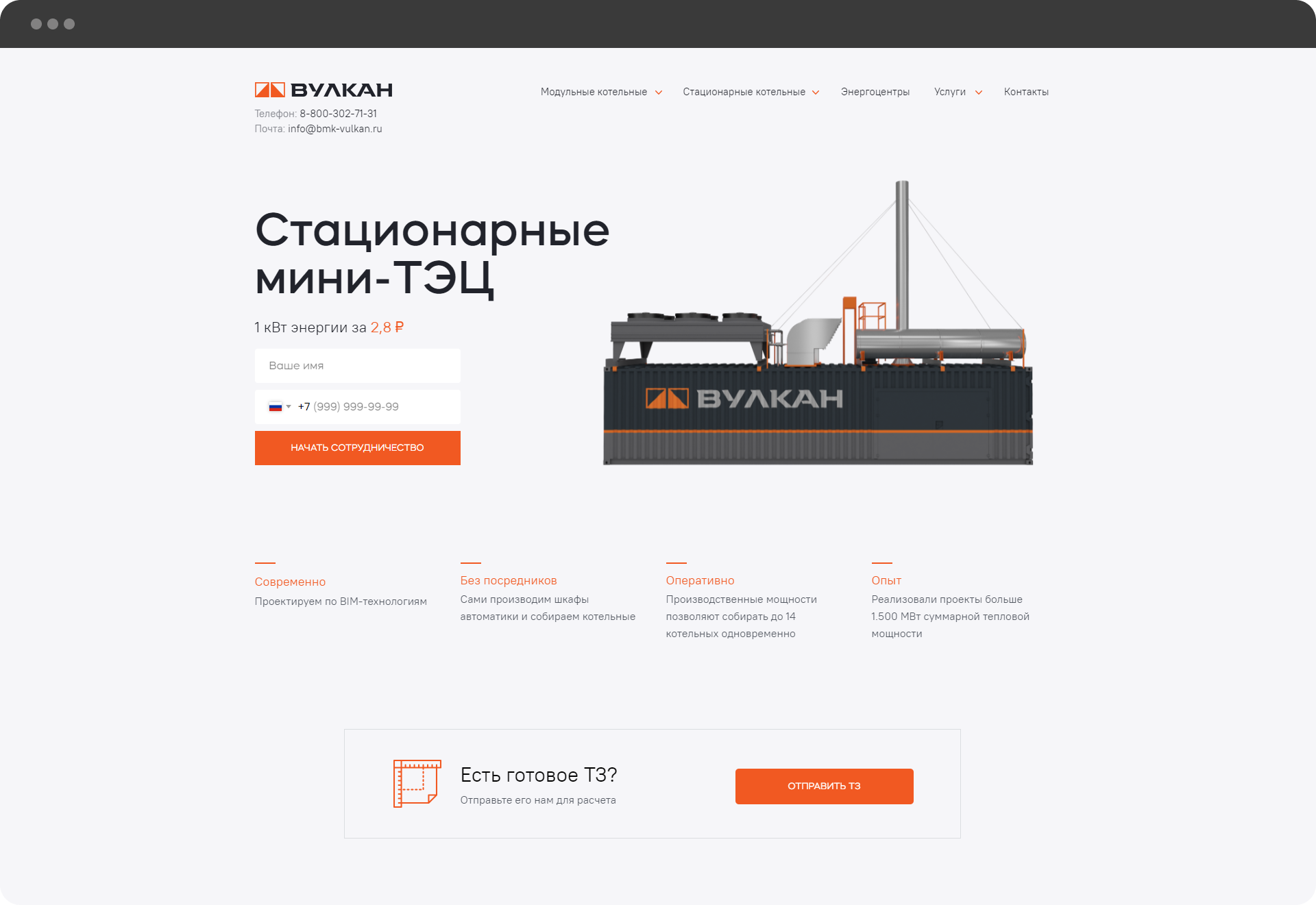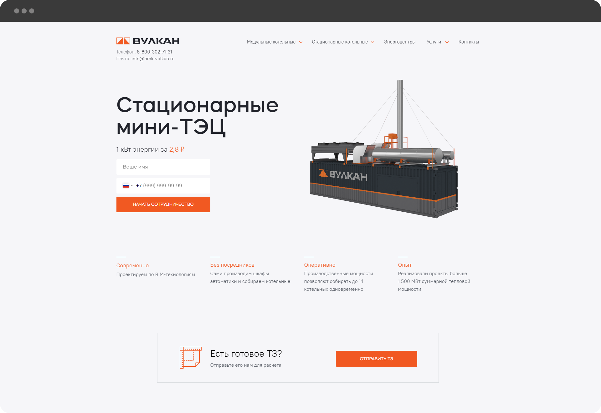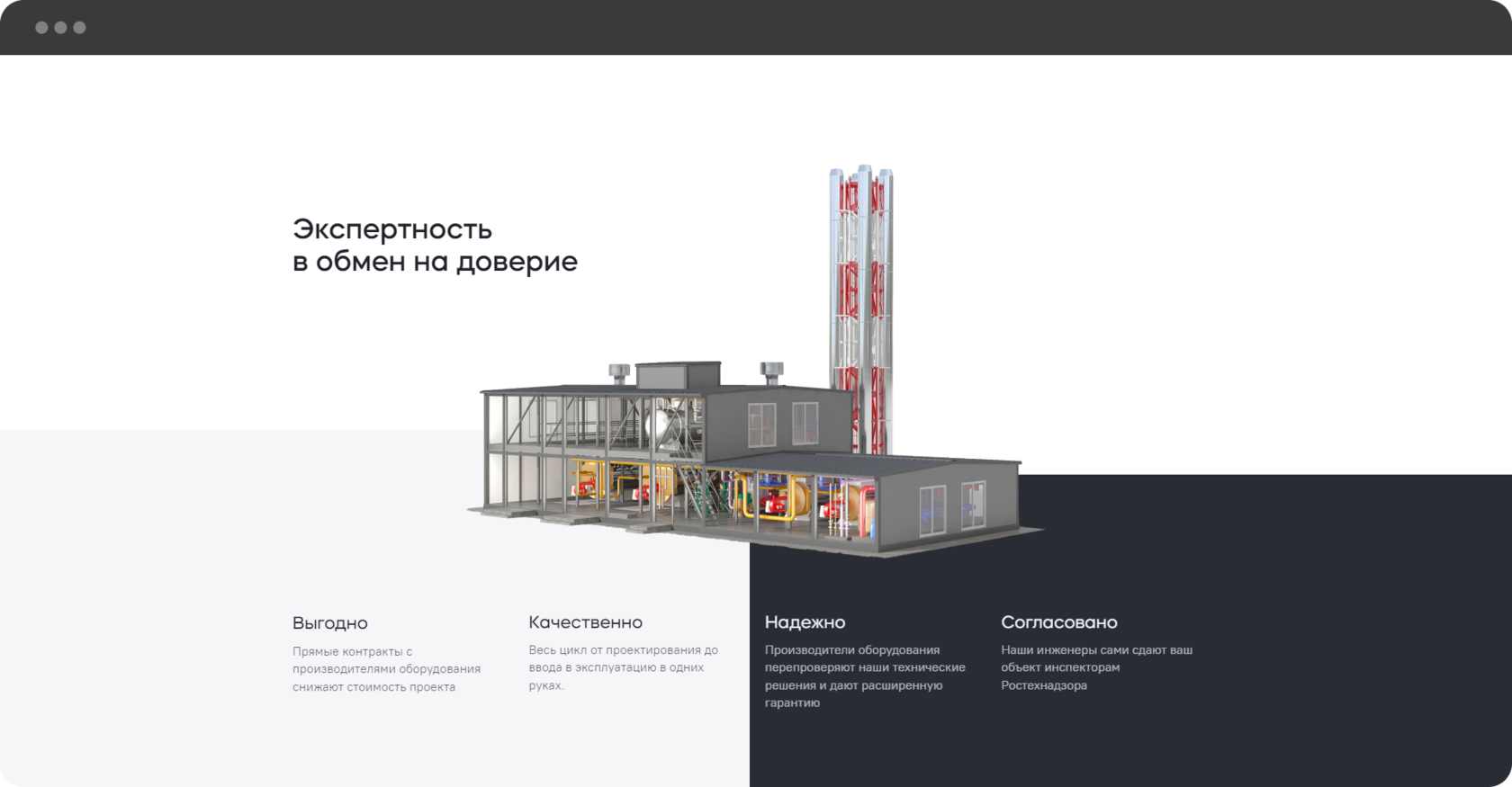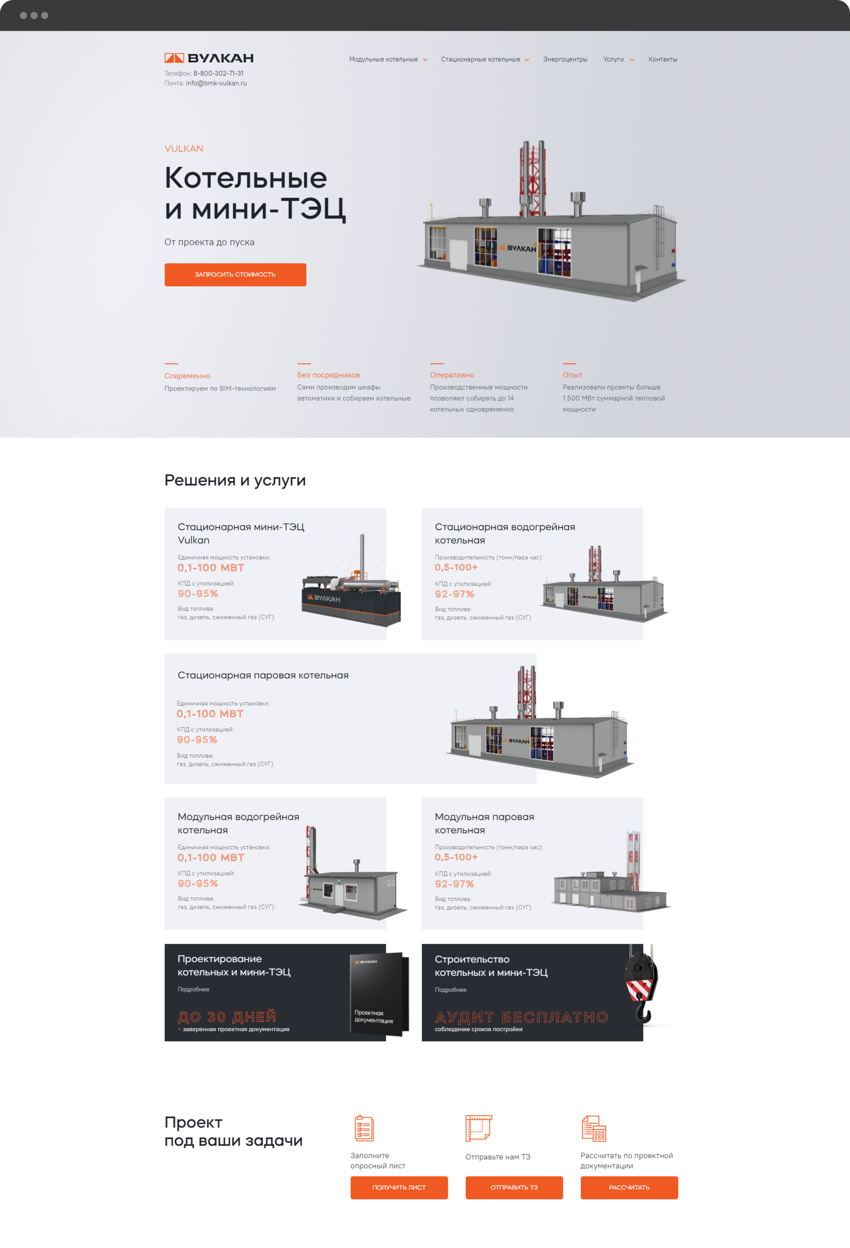 Сайт должен визуально передавать направление деятельности компании в области производства автономных систем отопления. Требовалось передать ощущение серьёзности и надёжности компании.