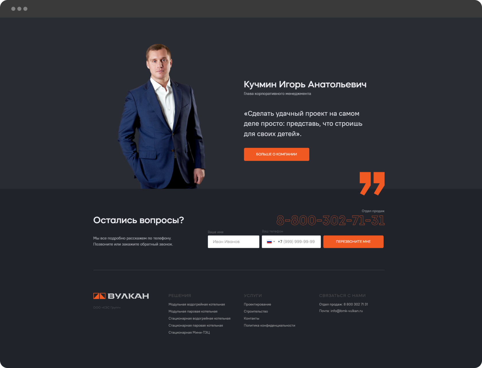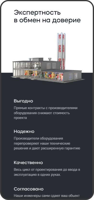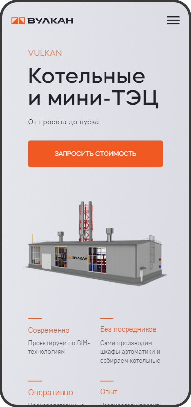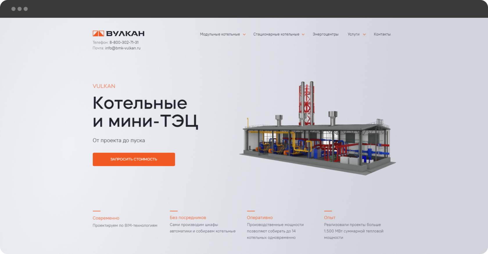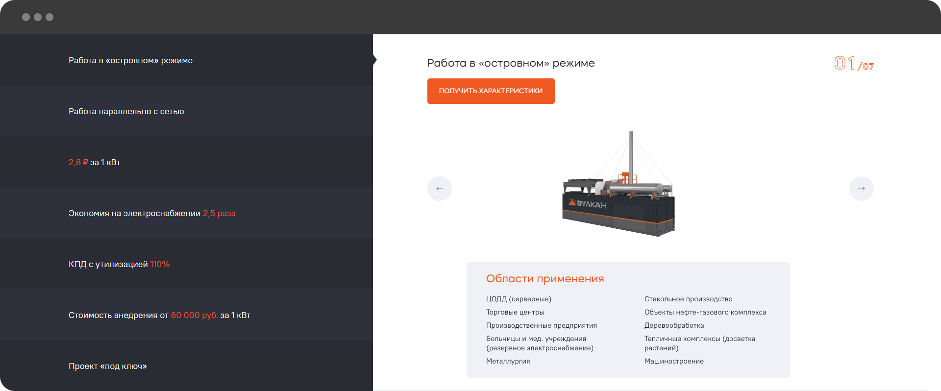 Сайт должен визуально передавать направление деятельности компании в области производства автономных систем отопления. Требовалось передать ощущение серьёзности и надёжности компании.